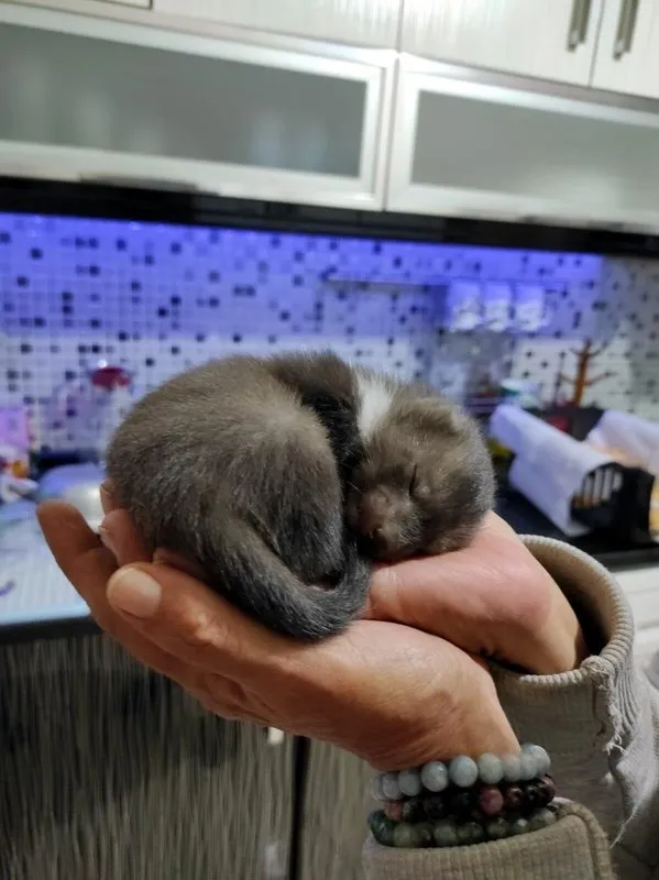 Tığoğlu tarafından biberon ile özel mamayla beslenen yavru sansar kendine geldi.